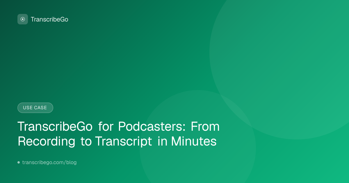 Short answer: Upload your podcast episode to TranscribeGo, get a full transcript in minutes, then use it to create show notes, blog posts, social media clips, and SEO-optimized content β all from a single recording. Free tier includes 10 minutes per month; paid plans start at $3.99/mo for 200 minutes.