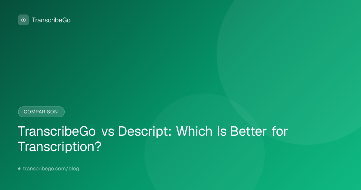 TranscribeGo uses a dual-engine AI system with automatic fallback, delivering 95β98% accuracy on clear audio. Descript advertises approximately 95% accuracy, but independent reviews note it struggles with proper nouns, accented speech, and overlapping speakers. For dedicated transcription, TranscribeGo's focused approach tends to produce more reliable results.