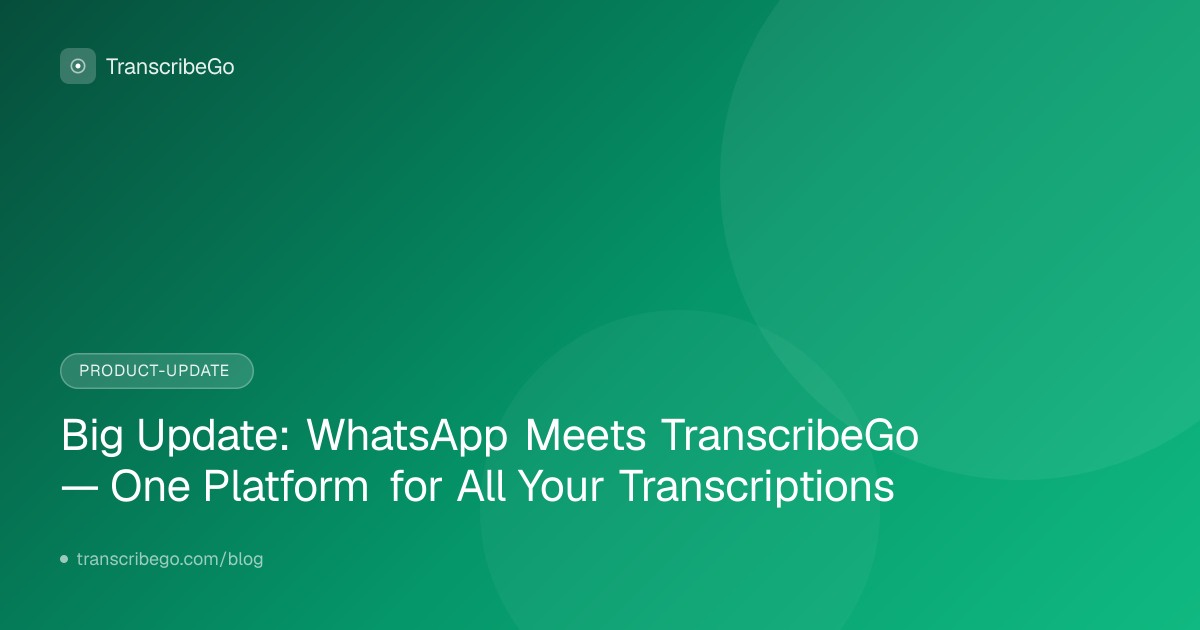 We've been working on this for months and it's finally here: TranscribeGo and TranscribeMe are now one unified platform. Whether you transcribe voice notes on WhatsApp, upload audio files on the web, or paste YouTube and TikTok links — everything lives under one roof, one account, one history.